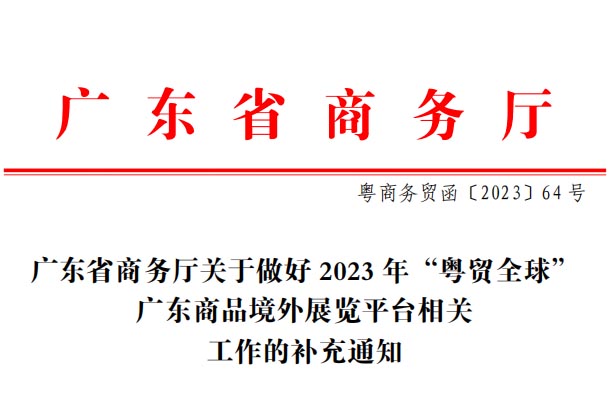 發(fā)布時(shí)間:2023-07-14廣東省商務(wù)廳關(guān)于做好 2023 年“粵貿(mào)全球”廣東商品境外展覽平臺(tái)相關(guān)工作的補(bǔ)充通知各地級(jí)以上市商務(wù)局,有關(guān)組展單位:為落實(shí)省···
